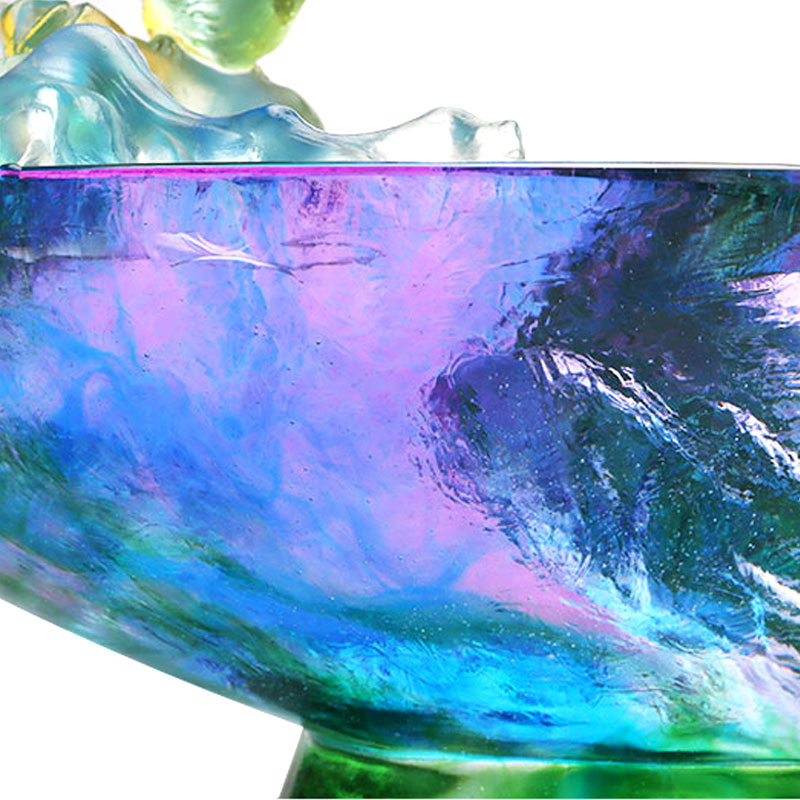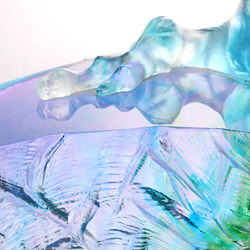 De glaskunstwerken zijn geleidelijk geëvolueerd van traditionele ambachtelijke geschenken naar decoratieve meubels, boeddhistische cultuur, kristallen serviesgoed en modieuze sieraden. De productiebasis van het bedrijf is gevestigd in de prachtige en welvarende waterstad Jinxi in Kunshan, in de provincie Jiangsu. Het beschikt over een onderzoeks- en ontwikkelingsruimte voor glasproductie van 35.000 vierkante meter. De faciliteit is uitgerust met onafhankelijke ontwerpmogelijkheden, kleimodelleringstechnieken en technologische onderzoeks- en ontwikkelingsmiddelen, die volwassen vaardigheden op het gebied van zowel productontwikkeling als productieprocessen demonstreren.