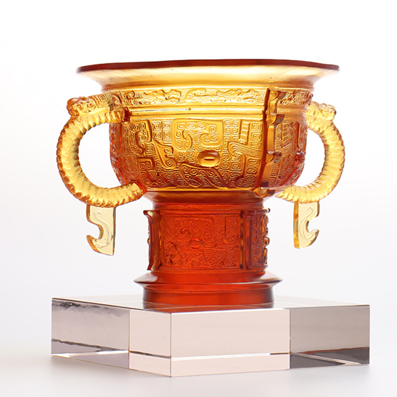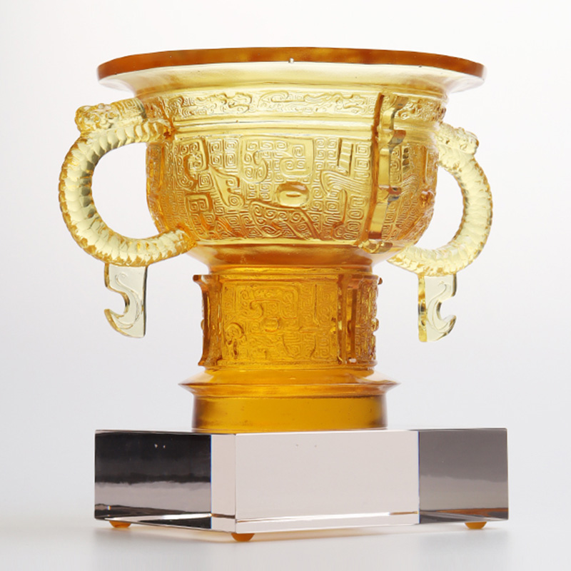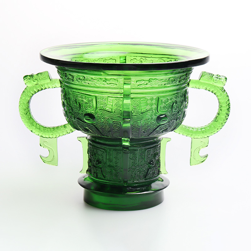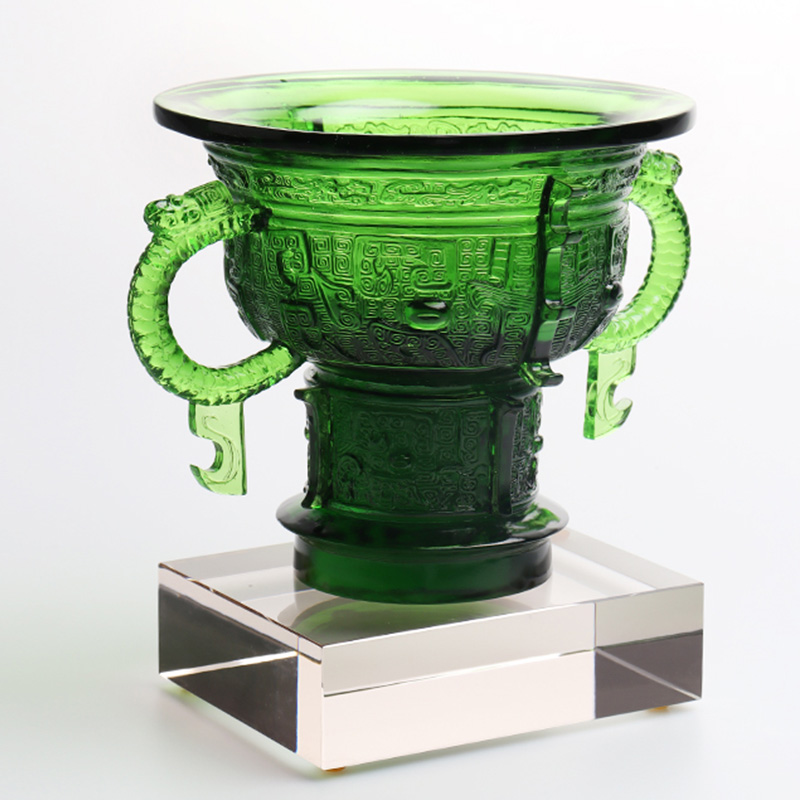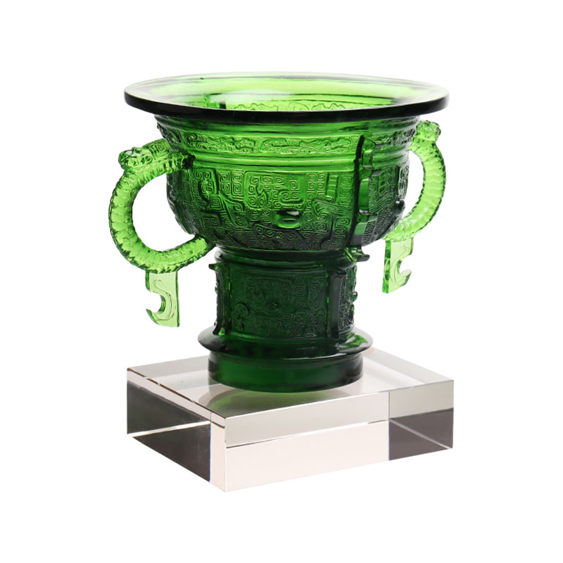 De glaskunstwerken zijn geleidelijk geëvolueerd van traditionele ambachtelijke geschenken naar decoratieve meubels, boeddhistische cultuur, kristallen serviesgoed en modieuze sieraden. De productiebasis van het bedrijf is gevestigd in de prachtige en welvarende waterstad Jinxi in Kunshan, in de provincie Jiangsu. Het beschikt over een onderzoeks- en ontwikkelingsruimte voor glasproductie van 35.000 vierkante meter. De faciliteit is uitgerust met onafhankelijke ontwerpmogelijkheden, kleimodelleringstechnieken en technologische onderzoeks- en ontwikkelingsmiddelen, die volwassen vaardigheden op het gebied van zowel productontwikkeling als productieprocessen demonstreren.